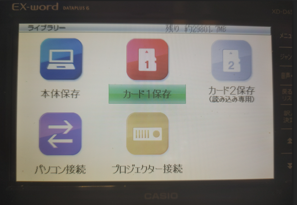 まずは、EX-Word側の1番側スロットにSdカード入れておきます。