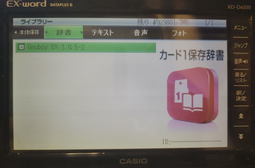 結果、辞書メニューには出てくるのだが、Gnuboy EXが起動する気配がない。