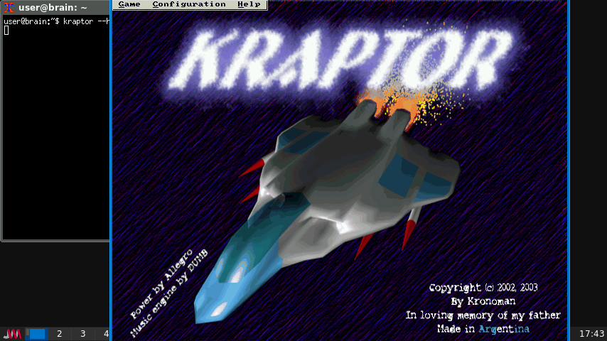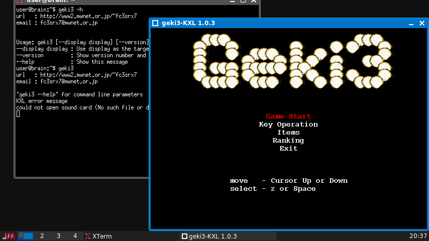 (移動すると、ウィンドウから終了はできないので、”ESC”キーで終わらせられます。)