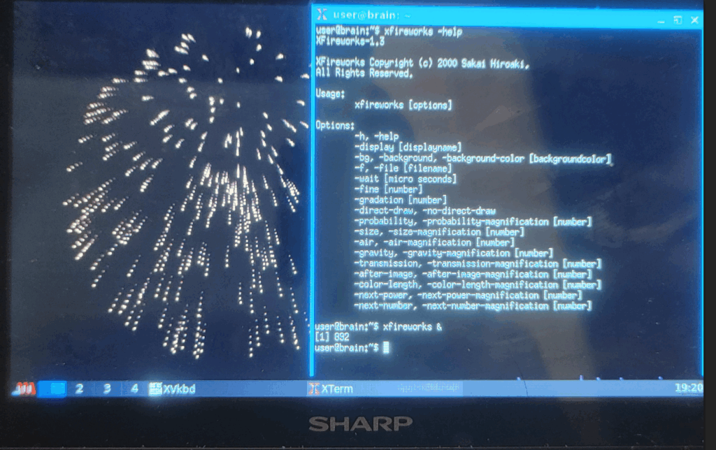 xfireworks Xのルートウィンドウ上で花火が打ちあがります