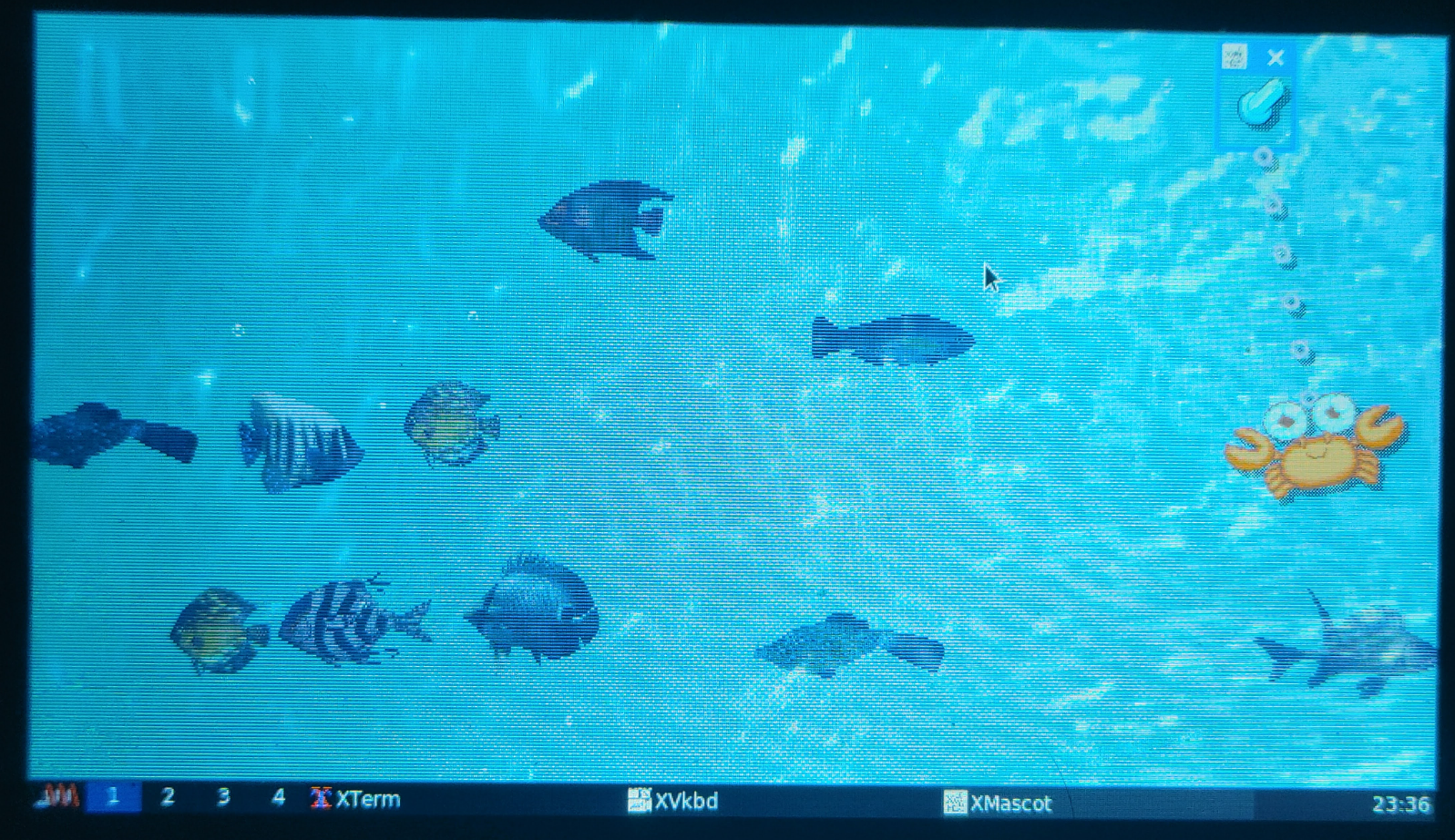 xfishtank X のルートで様々な熱帯魚が泳ぐ壁紙上の水槽が楽しめます。
