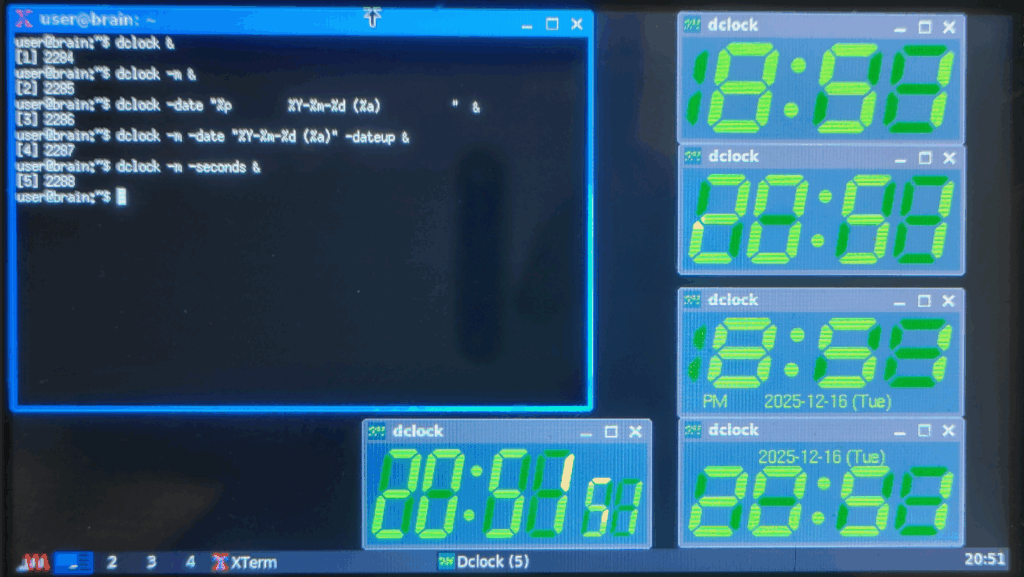 dclock X Window System 向けの柔軟な表示設定が可能なデジタル時計