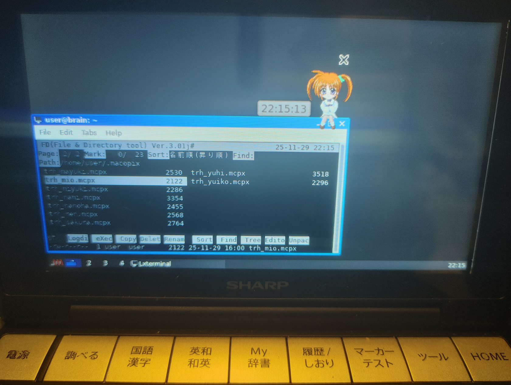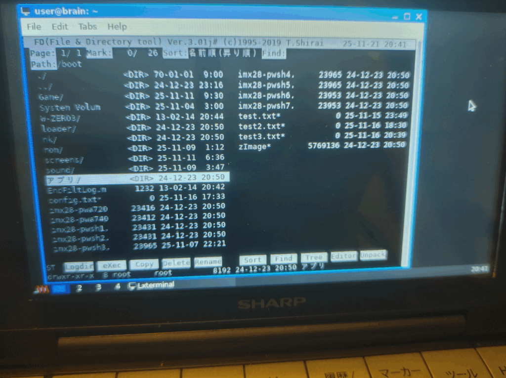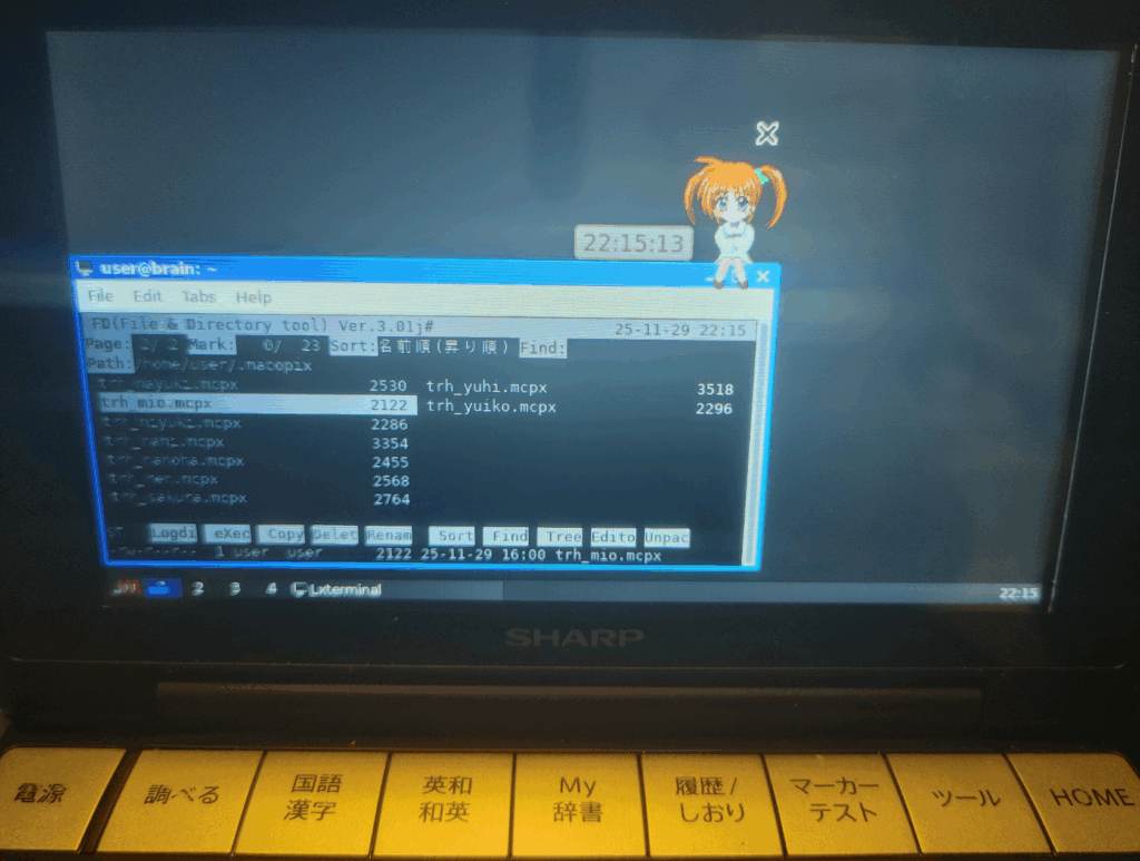 コマンドやファイル名を直接入力しなくても、ディレクトリの移動やファイルの操作支援ができるので、キー入力に工夫が必要なBrainuxにはピッタリなツールです。