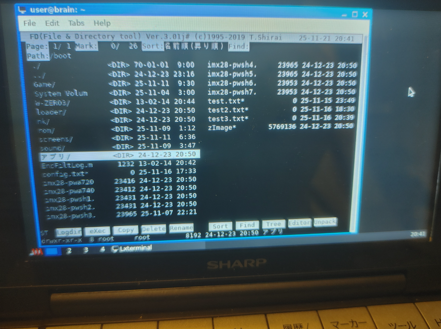 事前にSDカードの文字化け対策をしておけば、/boot以下でも日本語文字も正しく表示できます。