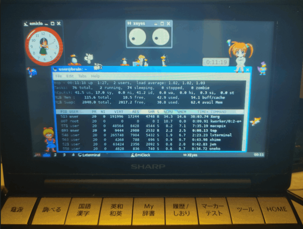 起動は、テーミナル上で「xshodou」で起動します。