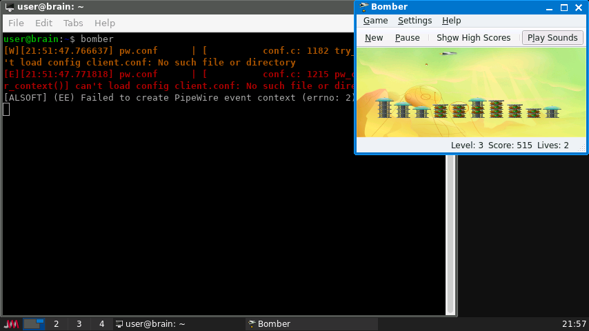 これは、BMB Compuscience CanadaのDavid L. Clark氏が開発した1980年代のゲームのアップデート版です。SDLツールキットを使用して*nix環境で動作するように調整されています。粗いグラフィック、お粗末なAI、そしてひどいサウンドがあなたを待っています。ゲームプレイはシンプルで中毒性があり、楽しいです。「横スクロール」ゲームで、複葉機を操縦して静止したフィールドを横切り、敵の陣地や飛行機を破壊します。