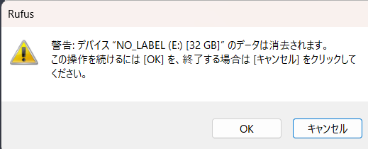 警告が出るので、問題なければ「OK」をクリックすると書き込みが開始されます。