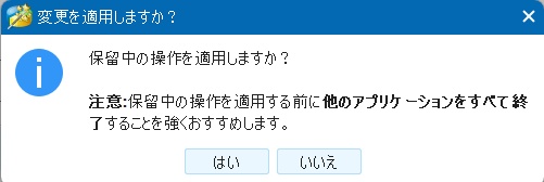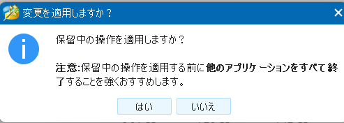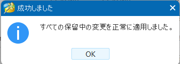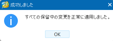 完了するとメッセージが表示されます(データの移動などはないのですぐに終わります)。