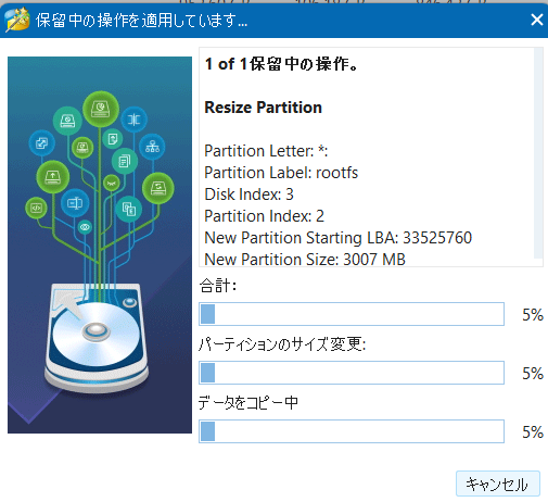 (実際のデータ移動が発生するのでそれなりに時間がかかります。)