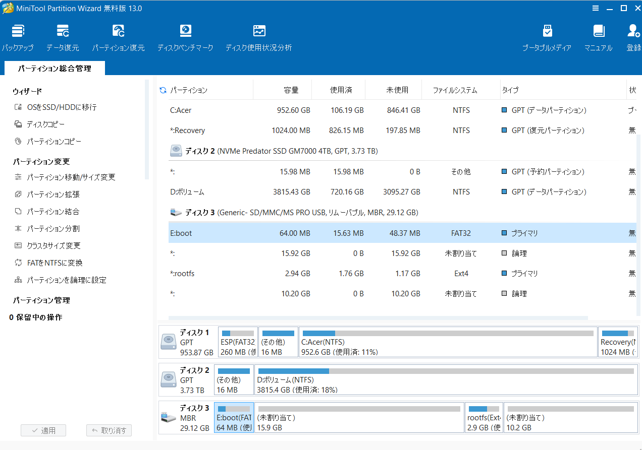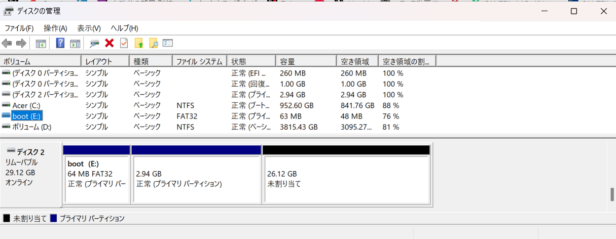 FAT32領域であるboot(FAT32)の後ろに空き領域が確保できたことがわかります。