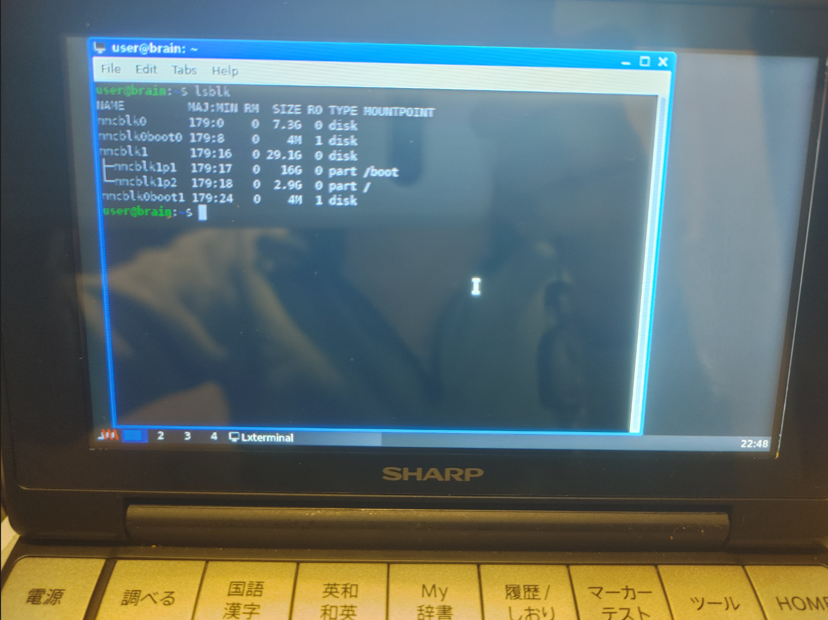 拡張したmicroSDをBrainに挿しなおして、先ほどと同様にBrainuxをブートします。