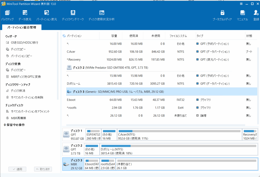 (間違えるとデータが消えて大惨事になりますので、容量などで確認してください。)