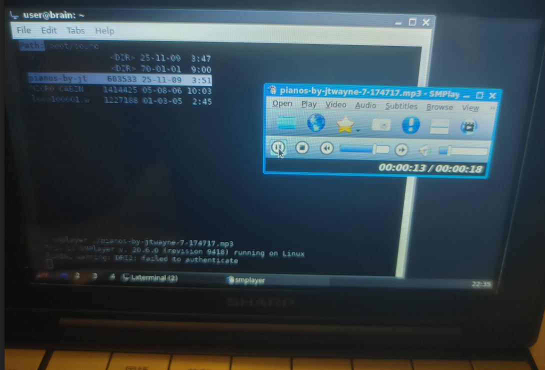 user@brain:/boot/sound$ mplayer pianos-by-jtwayne-7-174717.mp3 MPlayer 1.4 (Debian), built with gcc-10 (C) 2000-2019 MPlayer Team do_connect: could not connect to socket connect: No such file or directory Failed to open LIRC support. You will not be able to use your remote control. Playing pianos-by-jtwayne-7-174717.mp3. libavformat version 58.45.100 (external) Audio only file format detected. Load subtitles in ./ ========================================================================== Opening audio decoder: [mpg123] MPEG 1.0/2.0/2.5 layers I, II, III AUDIO: 44100 Hz, 2 ch, s16le, 256.0 kbit/18.14% (ratio: 32000->176400) Selected audio codec: [mpg123] afm: mpg123 (MPEG 1.0/2.0/2.5 layers I, II, III) ========================================================================== AO: [pulse] Init failed: Connection refused Failed to initialize audio driver 'pulse' AO: [alsa] 48000Hz 2ch s16le (2 bytes per sample) Video: no video Starting playback... A: 18.5 (18.5) of 18.0 (18.0) 75.0% Exiting... (End of file) user@brain:/boot/sound$ |