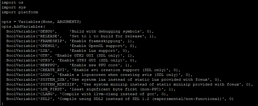Fceux 2.2.3 のビルドシステムは sconsを利用します(2.3.0からはcmakeです。)。