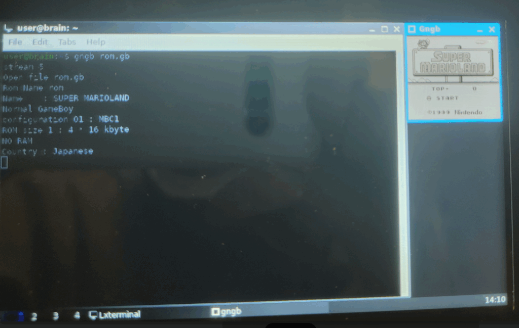 とりあえず、以下のコマンドでも手持ちのGBカードリッジのデータで実行したところ、以下で普通に動きます(音なし)。