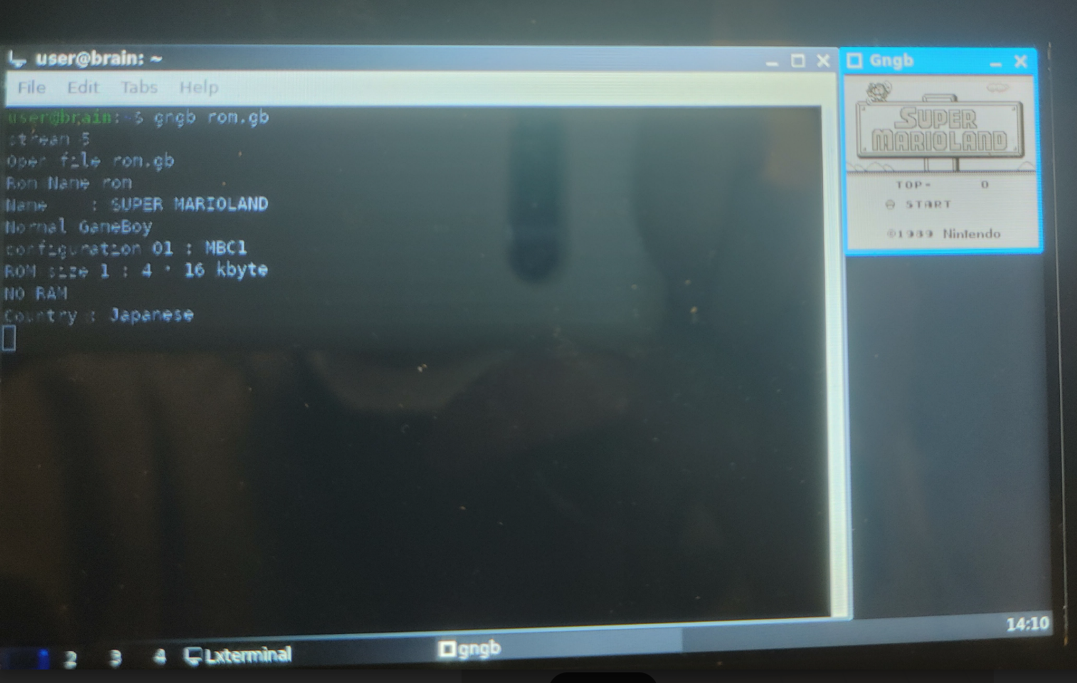 user@brain:~$ sudo apt show gngb [sudo] password for user: Package: gngb Version: 20060309-5 Priority: optional Section: x11 Maintainer: Debian Games Team <pkg-games-devel@lists.alioth.debian.org> Installed-Size: 223 kB Depends: libc6 (>= 2.28), libgl1, libsdl1.2debian (>= 1.2.11), zlib1g (>= 1:1.1.4) Homepage: http://m.peponas.free.fr/gngb/ Tag: hardware::emulation, hardware::input:joystick, hardware::input:keyboard, interface::commandline, interface::graphical, interface::x11, role::program, scope::utility, uitoolkit::sdl, use::gameplaying, x11::application Download-Size: 74.1 kB APT-Sources: http://archive.debian.org/debian bullseye/main armel Packages Description: Color Gameboy emulator Gngb is an emulator for GameBoy Classic, Color and others. . It uses the SDL library and OpenGL. This software supports joystick and keyboard as input. user@brain:~$ sudo apt install gngb Reading package lists... Done Building dependency tree... Done Reading state information... Done The following NEW packages will be installed: gngb 0 upgraded, 1 newly installed, 0 to remove and 1 not upgraded. Need to get 74.1 kB of archives. After this operation, 223 kB of additional disk space will be used. Get:1 http://archive.debian.org/debian bullseye/main armel gngb armel 20060309-5 [74.1 kB] Fetched 74.1 kB in 1s (53.2 kB/s) Selecting previously unselected package gngb. (Reading database ... 53441 files and directories currently installed.) Preparing to unpack .../gngb_20060309-5_armel.deb ... Unpacking gngb (20060309-5) ... Setting up gngb (20060309-5) ... Processing triggers for man-db (2.9.4-2) ... user@brain:~$ user@brain:~$ gngb Usage: gngb [OPTION]... FILE Emulate the GameBoy rom pointed by FILE -h, --help print this help and exit -a, --autoframeskip turn on autoframeskip --sleep_idle sleep when idle --color_filter turn on the color filter -r, --rumble turn on the rumble simulation --filter=X Set the filter to apply (only for standard mode) 0 = none 1 = scanline 2 = scanline 50% 3 = smooth 4 = pseudo cell shading -R, --res=WxH set the resolution to WxH (for YUV and GL mode) -Y, --yuv turn YUV mode on --yuv_type set the type of the YUV overlay 0 = YV12 1 = YUY2 -o, --opengl turn OpenGL mode on (if conpiled in) -f, --fullscreen run gngb in fullscreen --fps show frame/sec -s, --sound turn on sound --sample_rate=RATE set the sample rate to RATE -C, --color_gb force to color gameboy mode -G, --normal_gb force to normal gameboy mode -S, --super_gb force to super gameboy mode (experimental) --auto_gb turn on automatique detection -j, --joy_dev=N use the Nth joystick -g, --gdma_cycle cpu stop during gdma transfer (experimental) -v, --version printf gngb number version Most options can be disabled with --no-OPTION (Ex: --no-sound turn sound off) |
