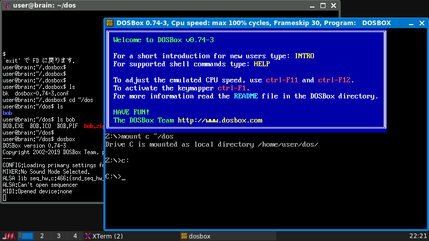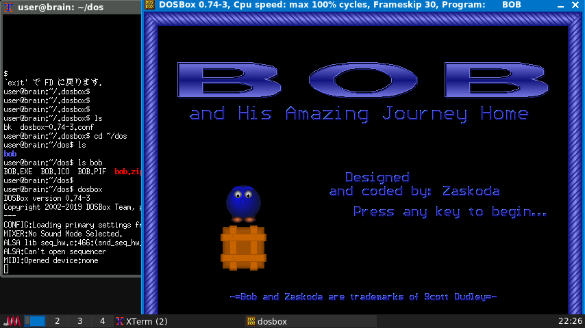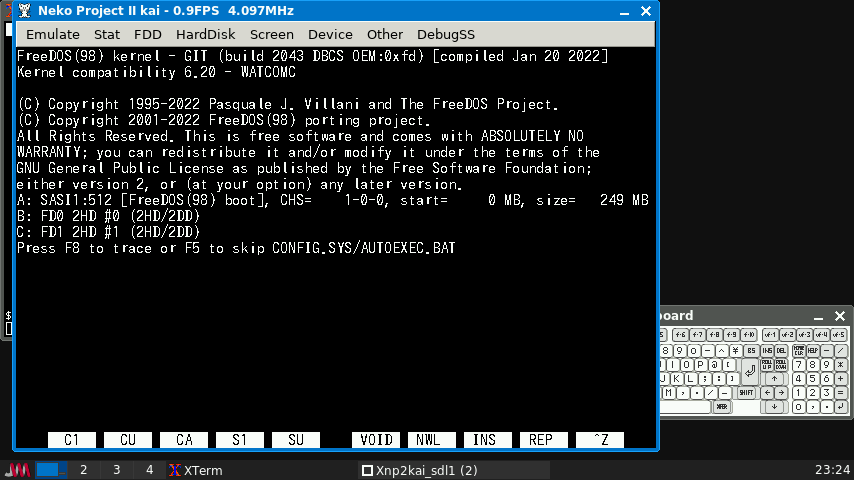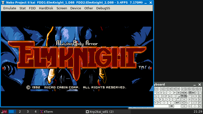 起動は、xnp2kai-sdl1です(PC9801エミュレート、X11ポートのSDL1バージョン)