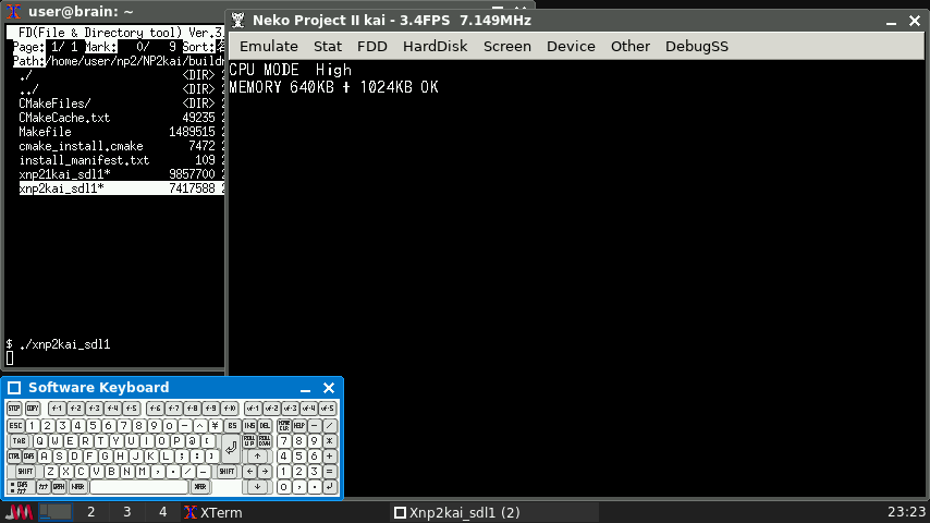BrainのCE版にもNP2がありますが、そちらのほうがBrainに特化した修正がされているようで動きもいいです。がこちらのX11版ではUSBキーボード、マウスが使えるのがメリットです。バーチャルキーボードもありますが、X11版にはカーソルキーをテンキーにする機能はないのでそこは残念。