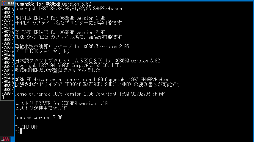 Human68kを起動して、コマンド操作するくらいならかろうじて可能かなといったレベルです。(マウス操作が実装されていないっぽいので注意)