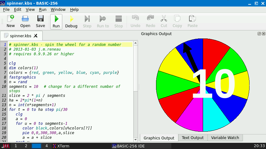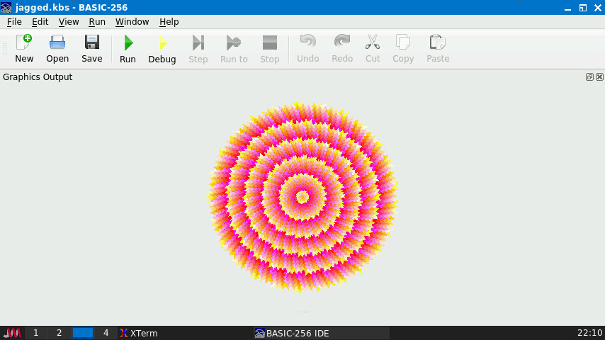 BASIC-256は、誰でも(特に中学生・高校生)にコンピュータプログラミングの基礎を教えられるように設計された、使いやすいBASICバージョンです。gosub、for/next、gotoといった伝統的な制御構造を採用しており、子どもたちがプログラムのフロー制御の仕組みを簡単に理解できます。グラフィックモードが組み込まれており、数分で画面に絵を描くことができます。